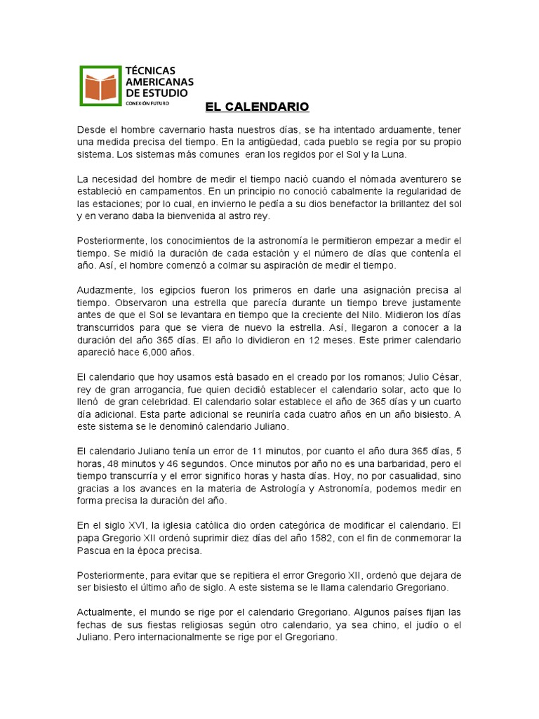 una medida precisa del tiempo. En la antigüedad, cada pueblo se regía por su propio