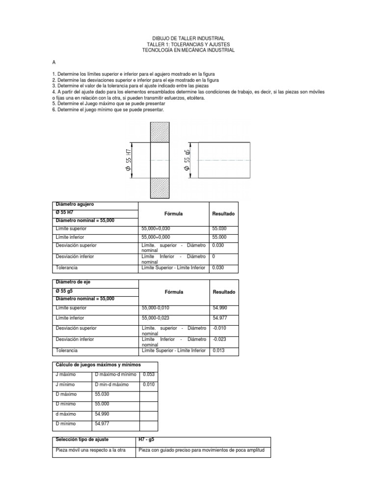 TALLER 1: TOLERANCIAS Y AJUSTES