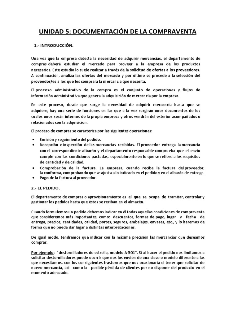 UNIDAD 5: DOCUMENTACIÓN DE LA COMPRAVENTA