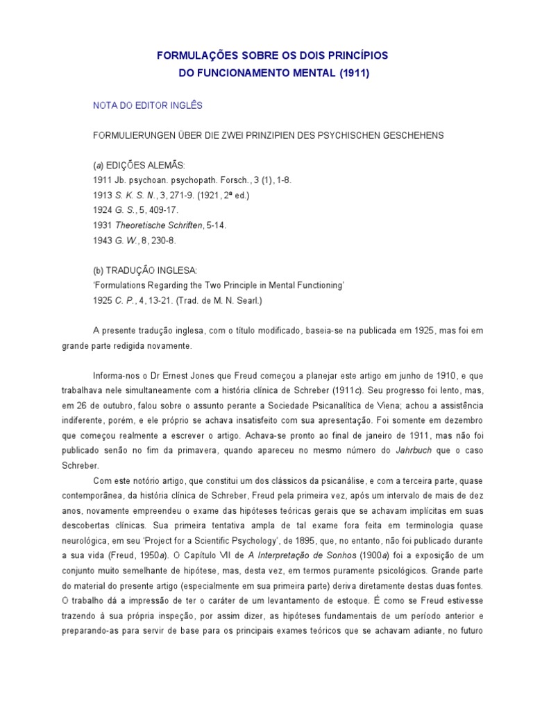 Informa-nos o Dr Ernest Jones que Freud começou a planejar este artigo em junho de 1910, e que