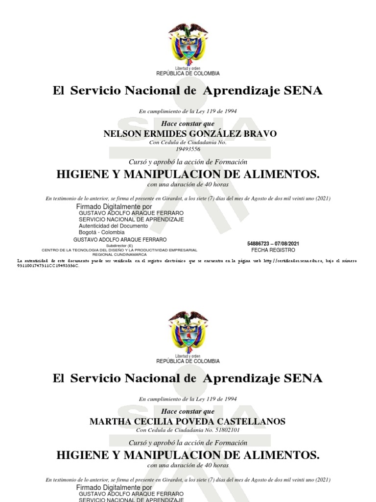 La autenticidad de este documento puede ser verificada en el registro electrónico que se encuentra en la página web http://certificados.sena.edu.co, bajo el número