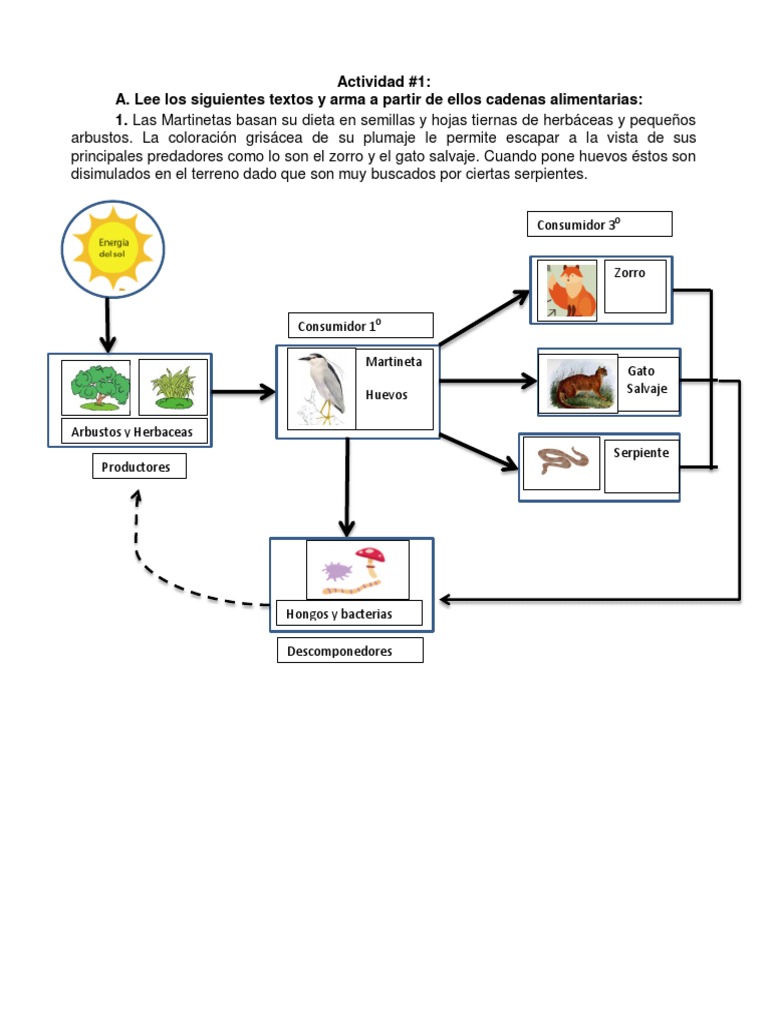 A. Lee los siguientes textos y arma a partir de ellos cadenas alimentarias: