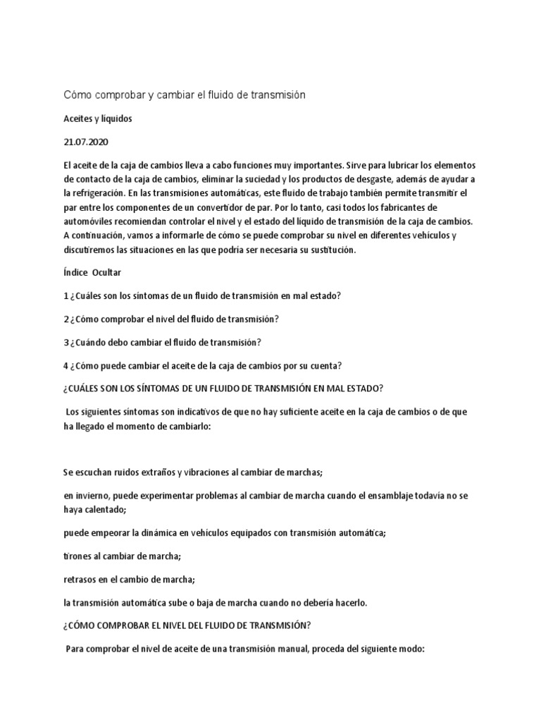1 ¿Cuáles son los síntomas de un fluido de transmisión en mal estado?