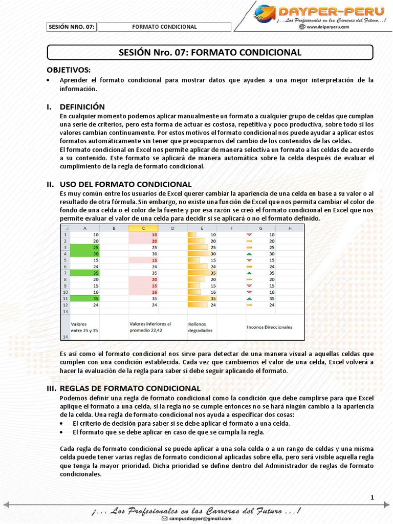 SESIÓN Nro. 07: FORMATO CONDICIONAL