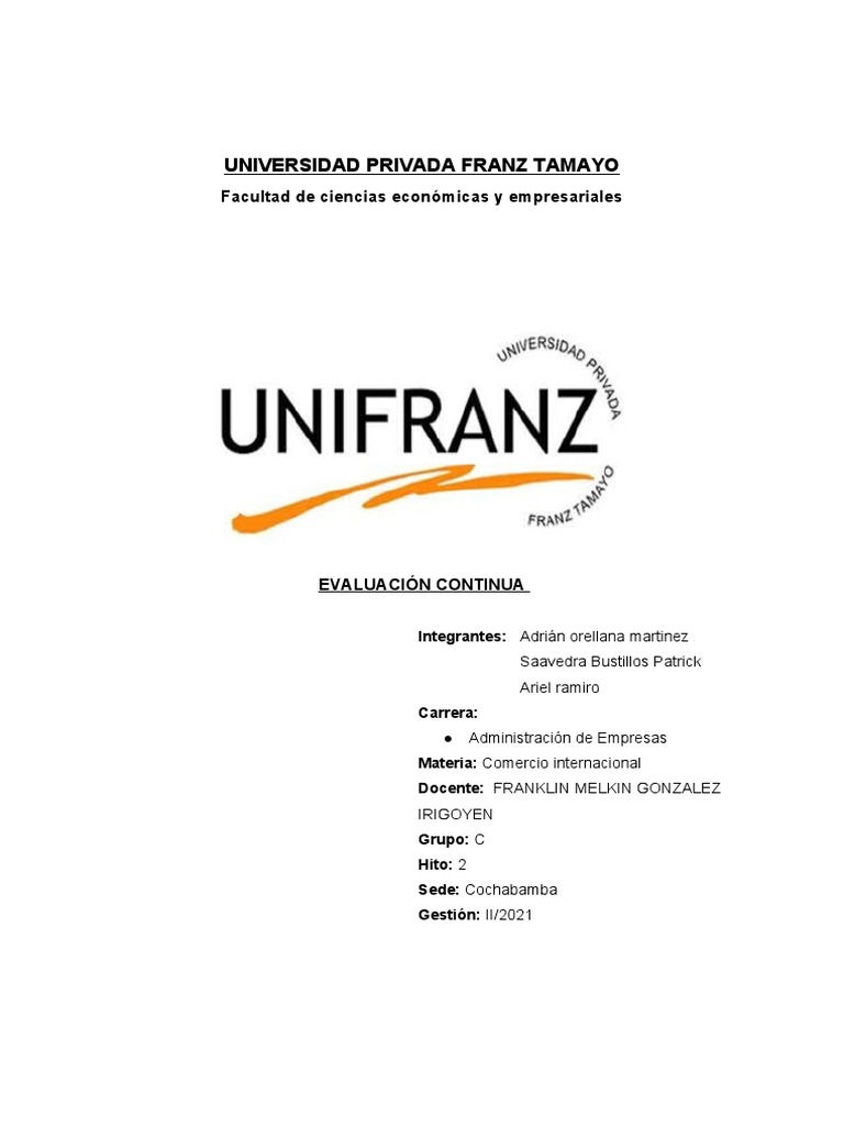 UNIVERSIDAD PRIVADA FRANZ TAMAYO