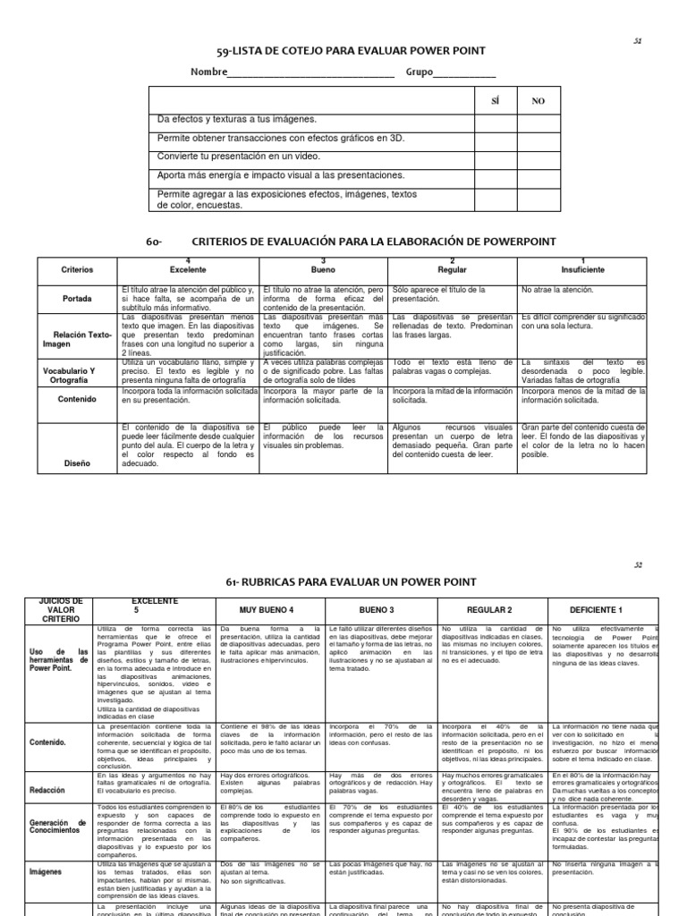 61- RUBRICAS PARA EVALUAR UN POWER POINT