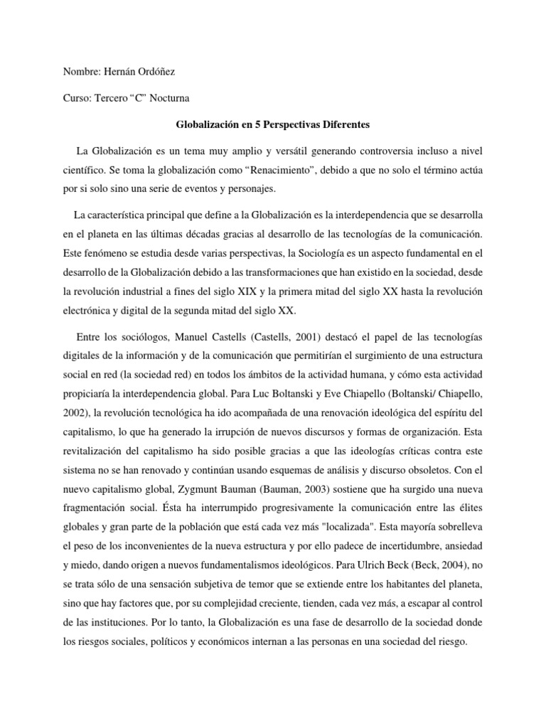 propiciaría la interdependencia global. Para Luc Boltanski y Eve Chiapello (Boltanski/ Chiapello,
