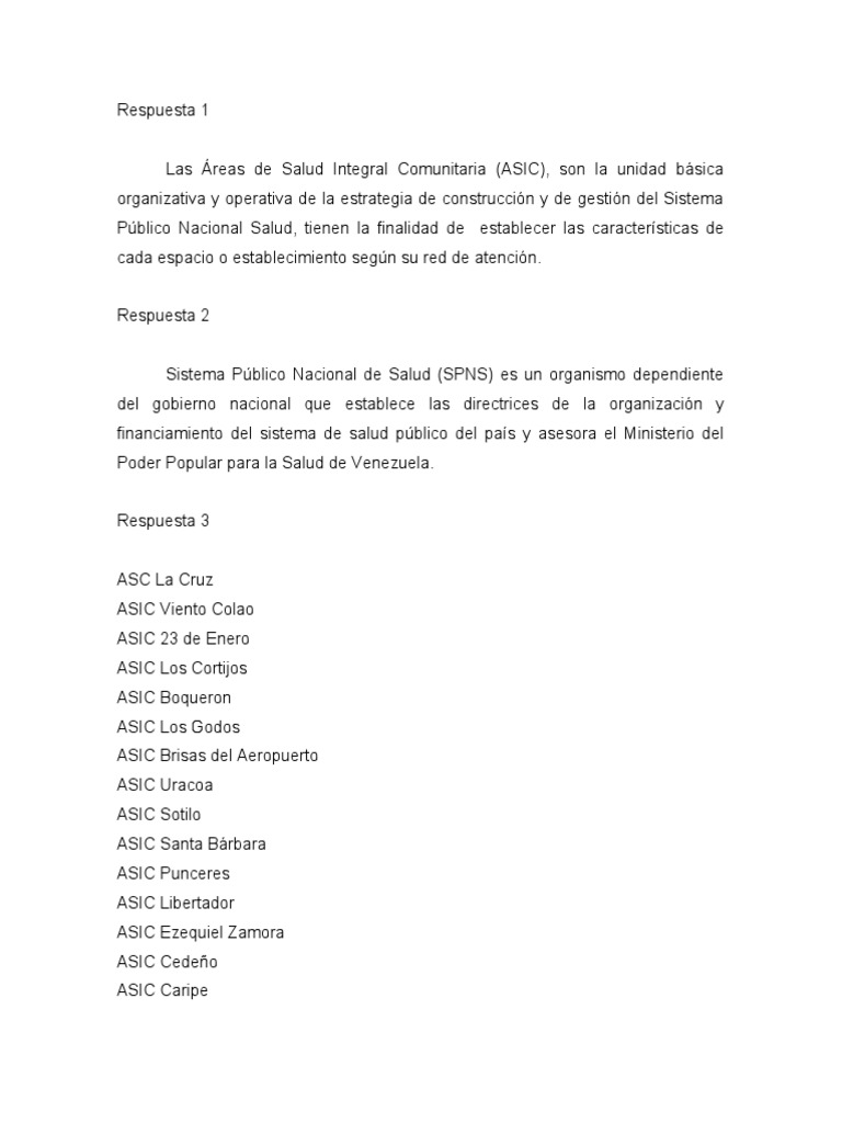 Las Áreas de Salud Integral Comunitaria (ASIC), son la unidad básica
