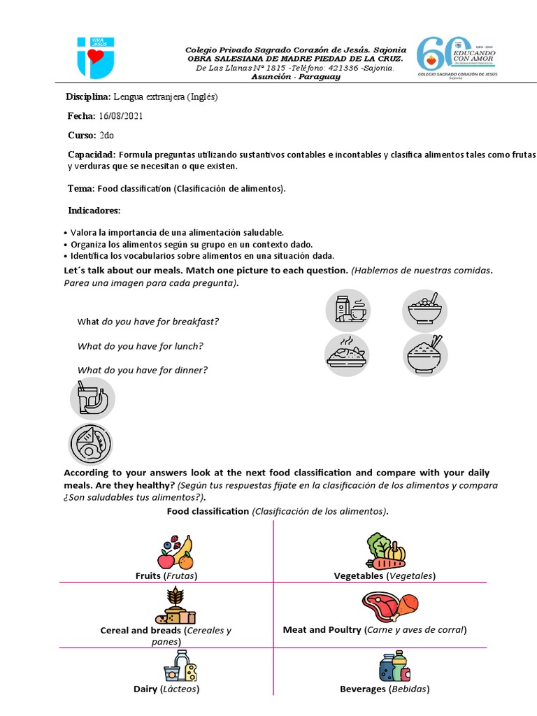 3. Write a healthy eating plan, taking into account the classification of foods (Escribe un plan de