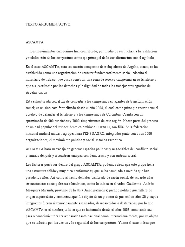Caso ASCAMTA: Asociación Campesina de Trabajadores de Argelia –