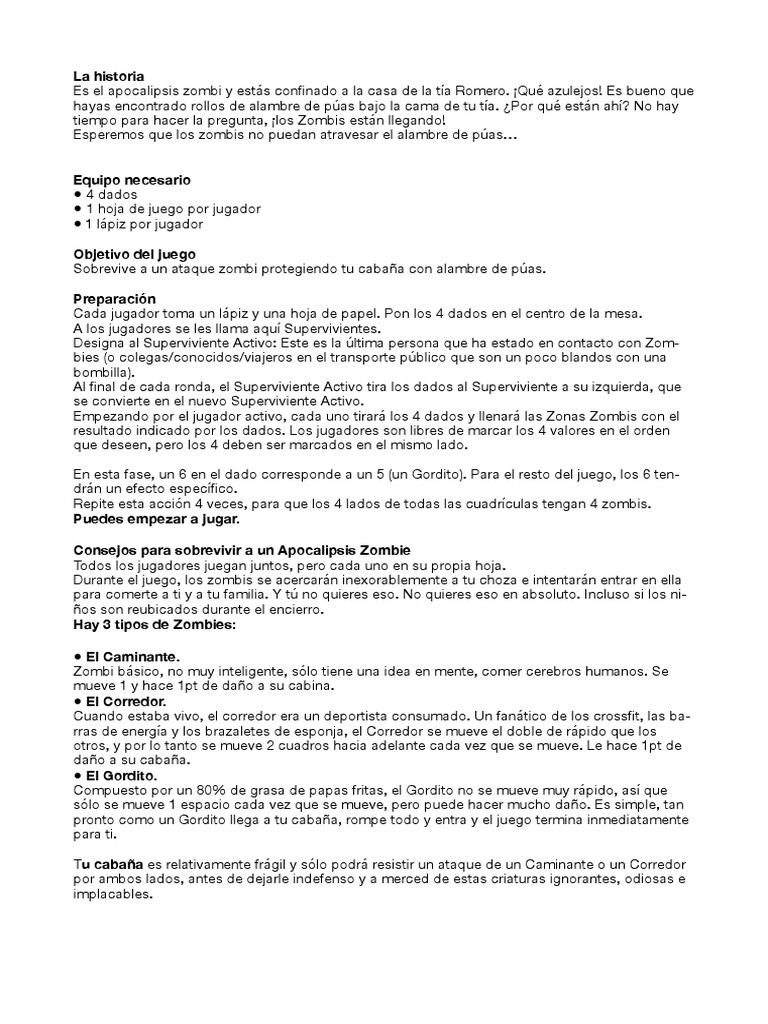 nunciado a su ataque (todos los zombis tienen rayas): Ganas el juego inmediatamente.