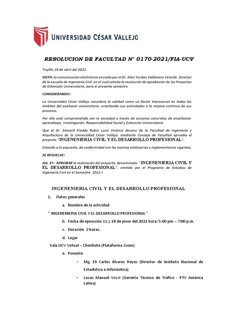 RESOLUCION DE FACULTAD N° 0170-2021/FIA-UCV