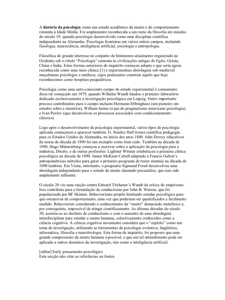 Psicologia como uma auto-consciente campo de estudo experimental é comumente