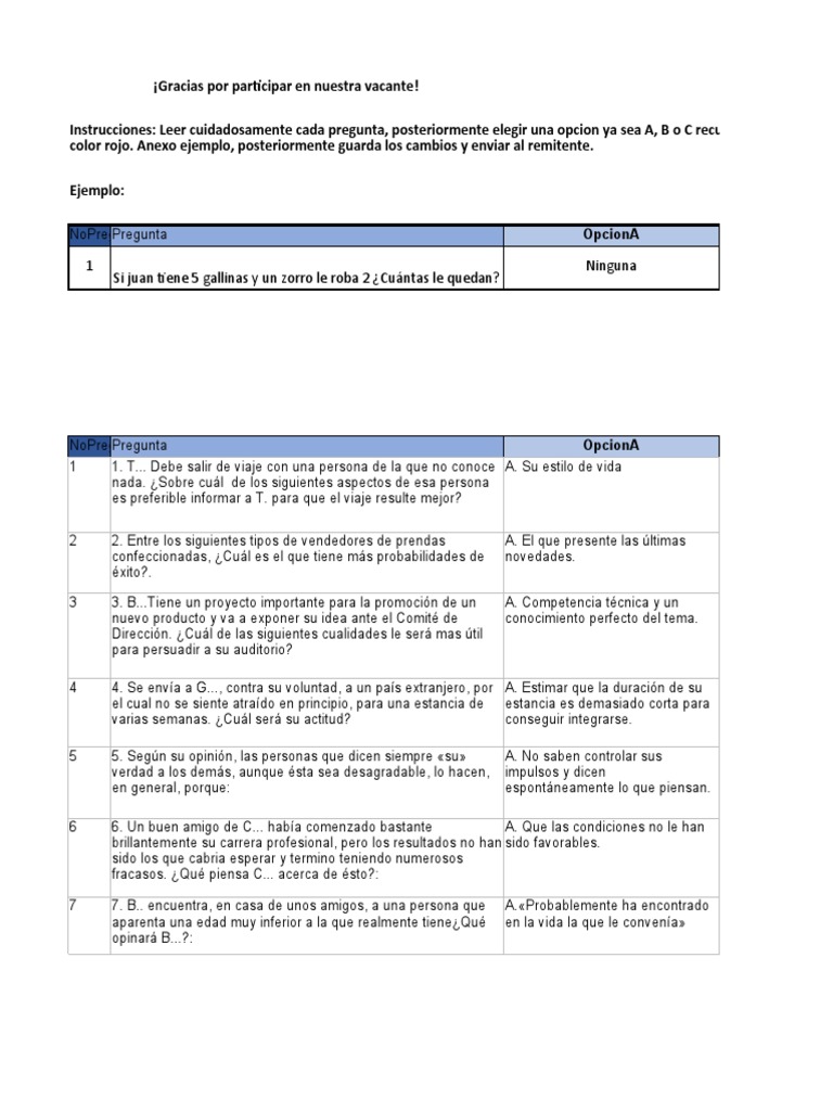 Instrucciones: Leer cuidadosamente cada pregunta, posteriormente elegir una opcion ya sea A, B o C recuerda solo puede se