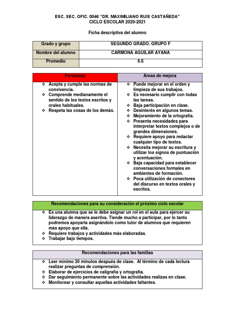 Ficha descriptiva del alumno
