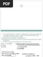 1. Una portadora de 75MHz cuya amplitud es de 50V se modula con una señal de audio de 3KHz