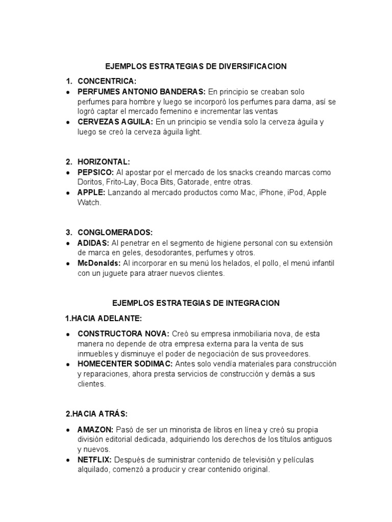 EJEMPLOS ESTRATEGIAS DE DIVERSIFICACION
