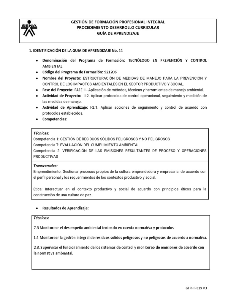 1. IDENTIFICACIÓN DE LA GUIA DE APRENDIZAJE No. 11