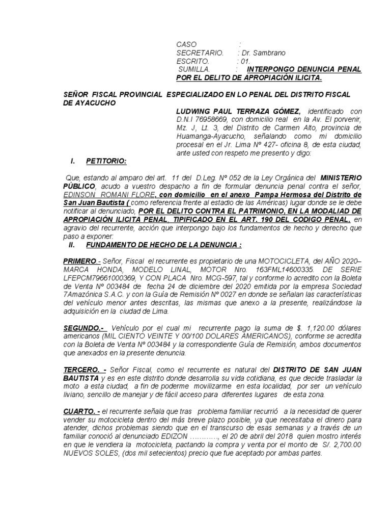 A Ud. Señor Fiscal Provincial pido se sirva iniciar investigación preliminar, y conforme a los