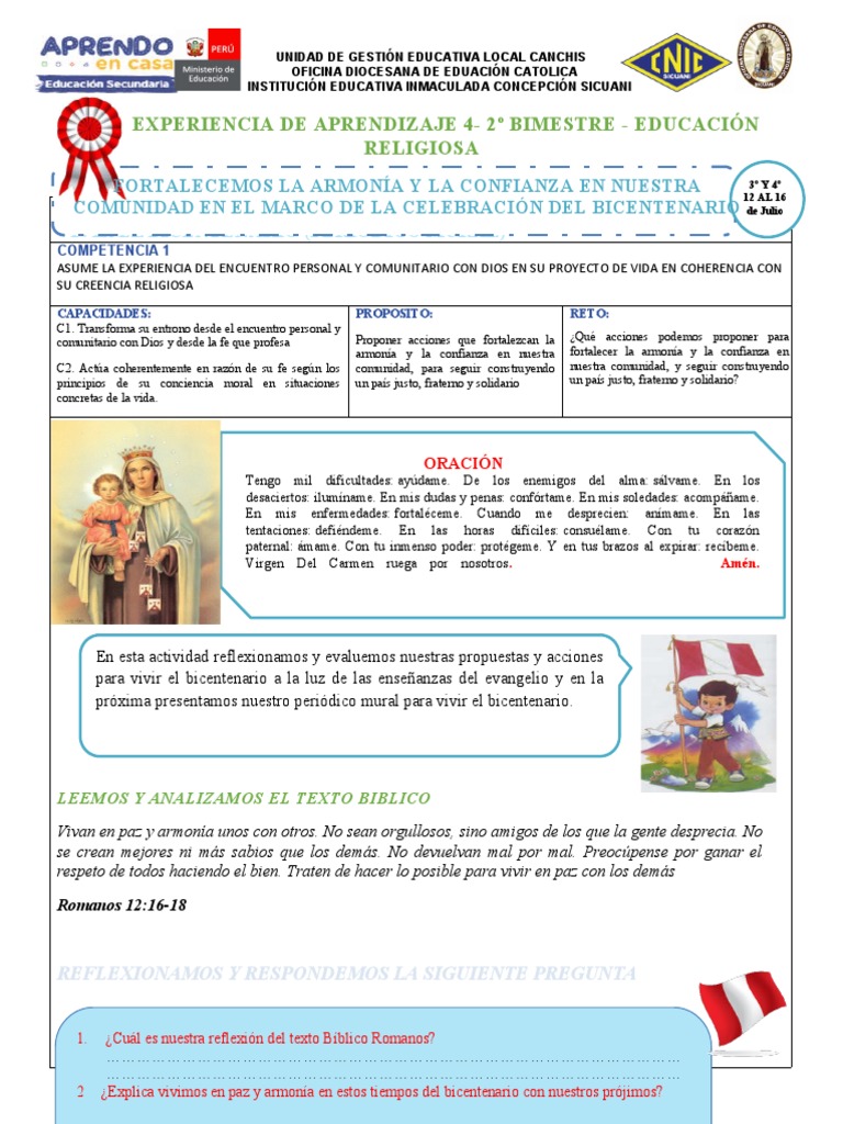 2 ¿Explica vivimos en paz y armonía en estos tiempos del bicentenario con nuestros prójimos?