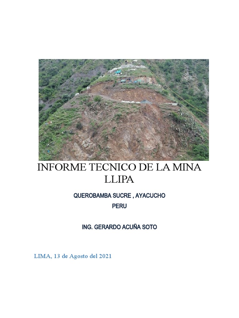MINERA LLIPA – Centro Poblado Potongo – Distrito De Querobamba – Provincia De Sucre – Region