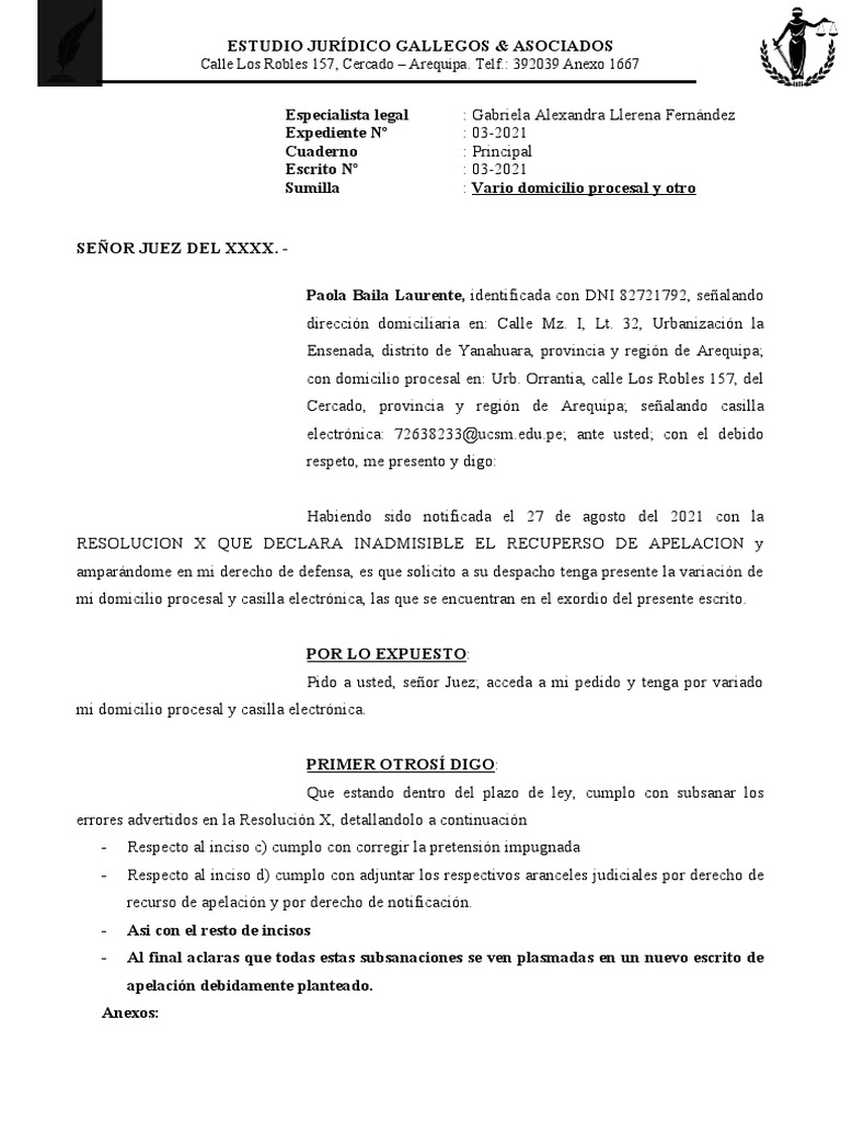 - Al final aclaras que todas estas subsanaciones se ven plasmadas en un nuevo escrito de