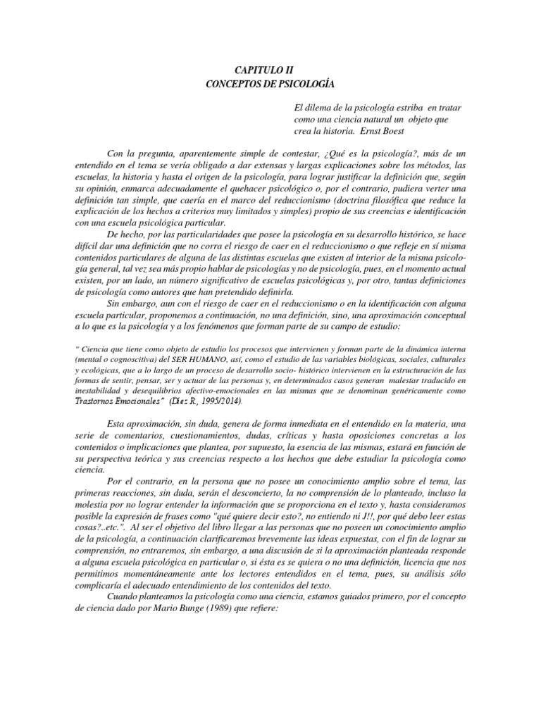 escuelas, la historia y hasta el origen de la psicología, para lograr justificar la definición que, según