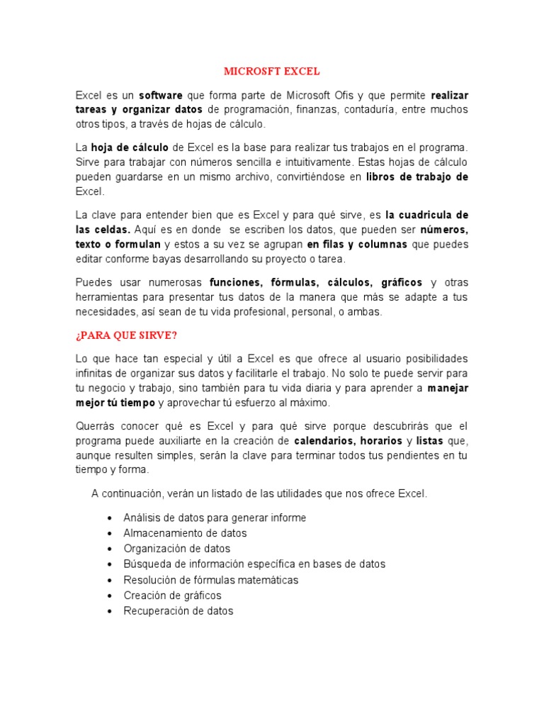Excel es un software que forma parte de Microsoft Ofis y que permite realizar
