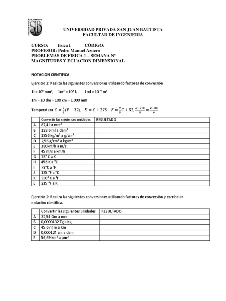 Convertir las siguientes unidades RESULTADO