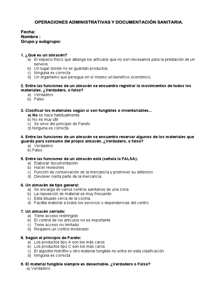 OPERACIONES ADMINISTRATIVAS Y DOCUMENTACIÓN SANITARIA.