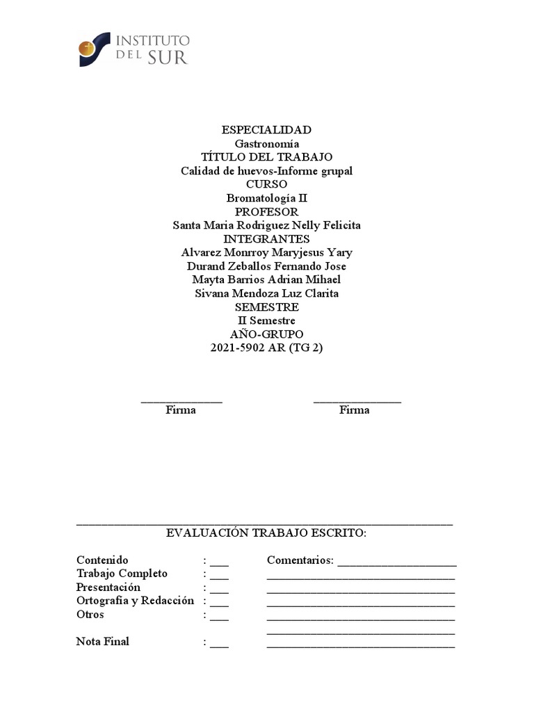Calidad de huevos-Informe grupal