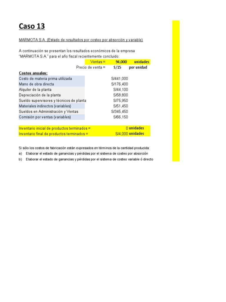 MARMOTA S.A. (Estado de resultados por costeo por absorción y variable)