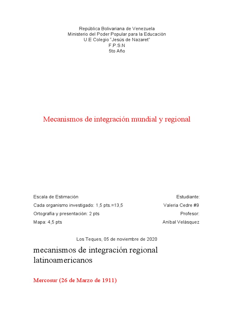 mecanismos de integración regional