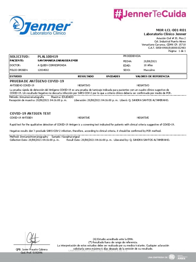QFB. Javier Frausto Cabrera solicitarla como máximo 6 días después de la emisión de su resultado.