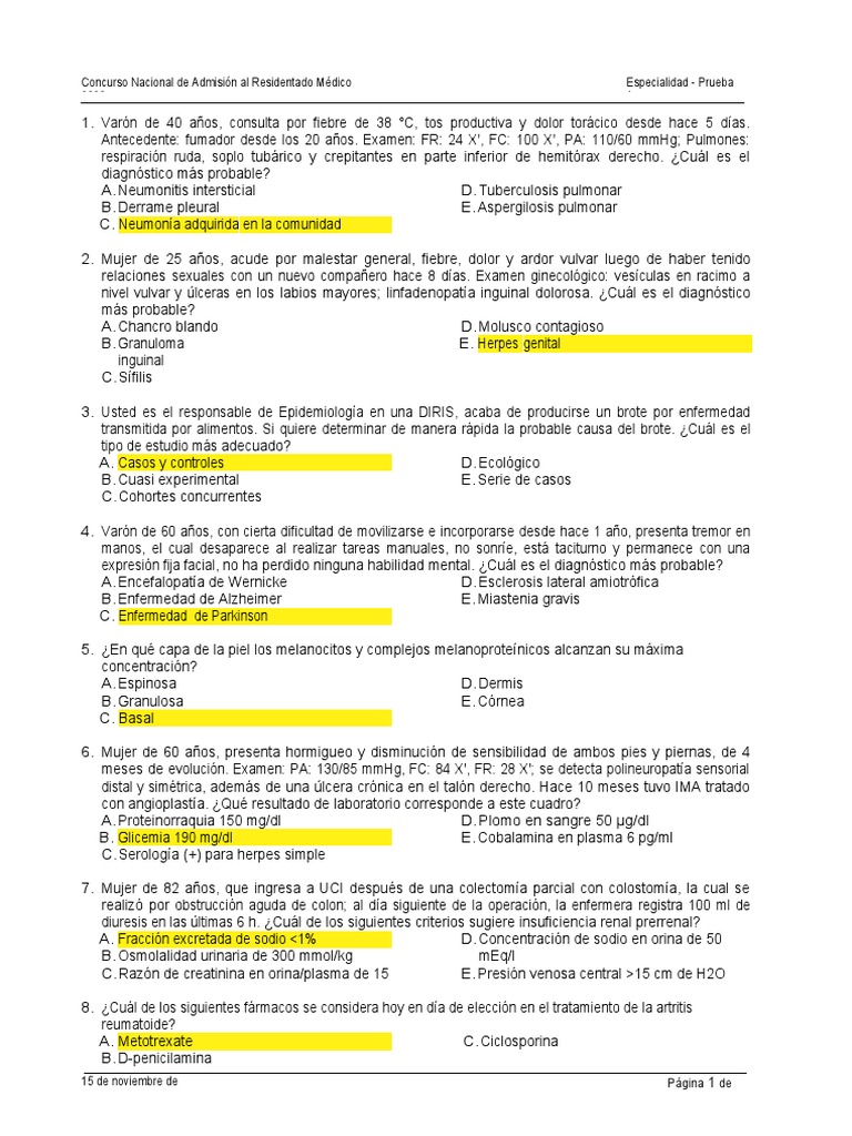 Concurso Nacional de Admisión al Residentado Médico Especialidad - Prueba