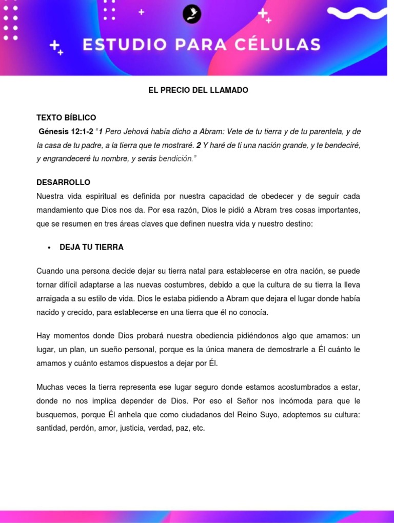 Génesis 12:1-2 “1 Pero Jehová había dicho a Abram: Vete de tu tierra y de tu parentela, y de
