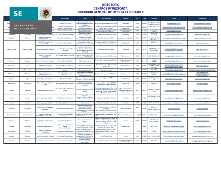 Director Centro Pymexporta Cd. Administrativa Benemerito de las 5015000 ext. 12141