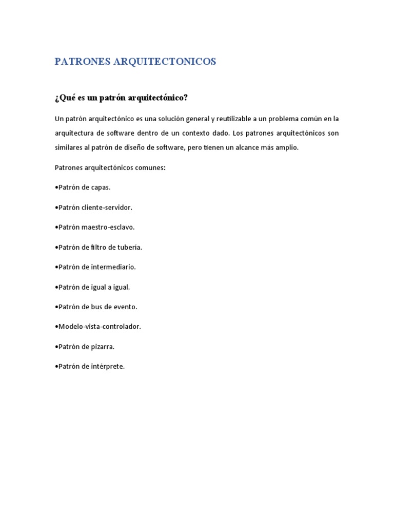 arquitectura de software dentro de un contexto dado. Los patrones arquitectónicos son