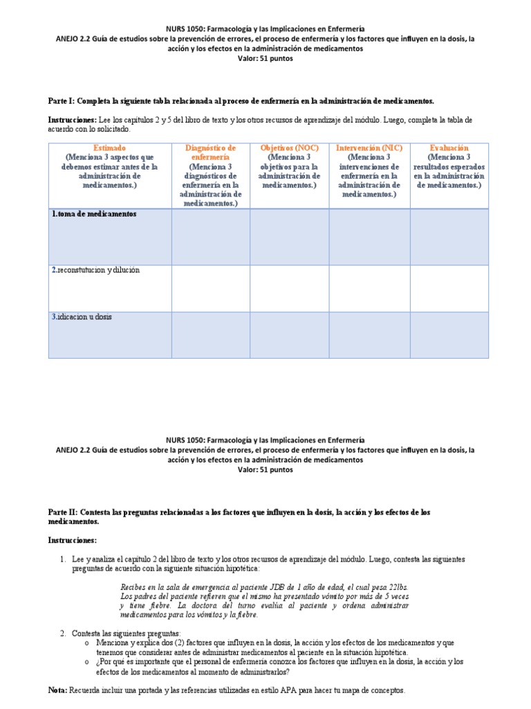 NURS 1050: Farmacología y las Implicaciones en Enfermería