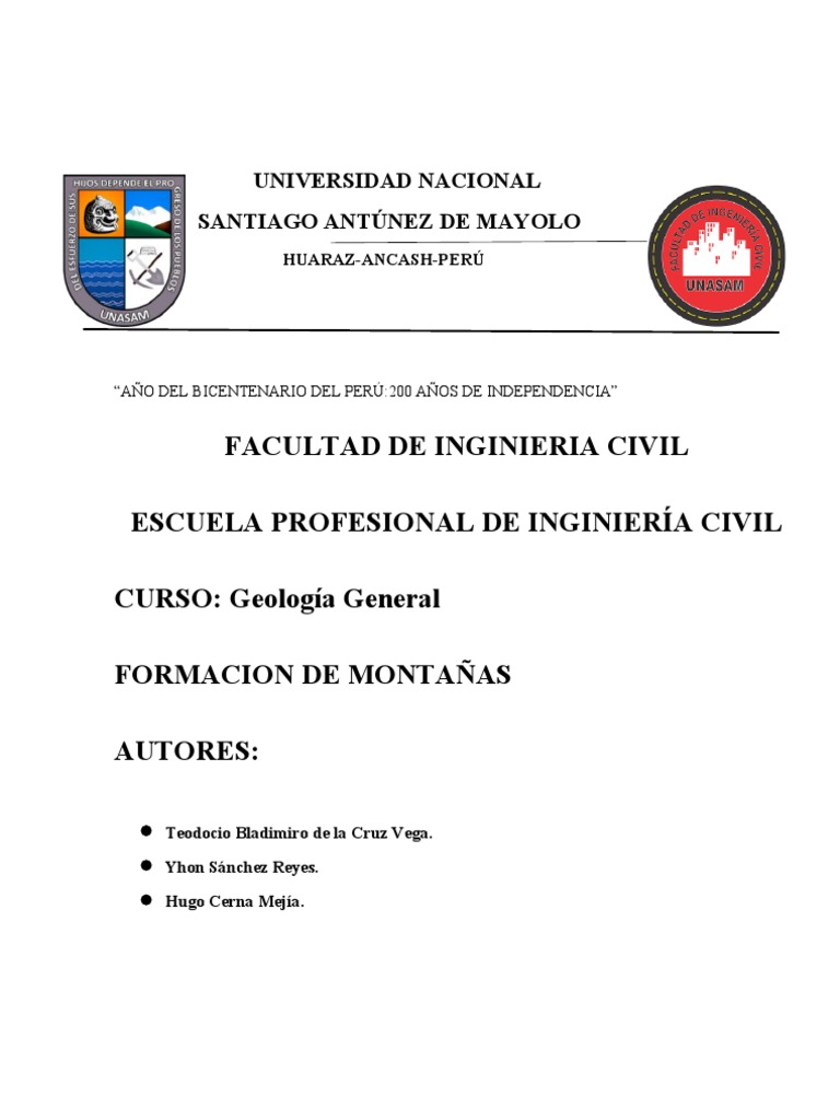 En este trabajo lo que se buscara es entender el proceso de formación de las montañas, como se