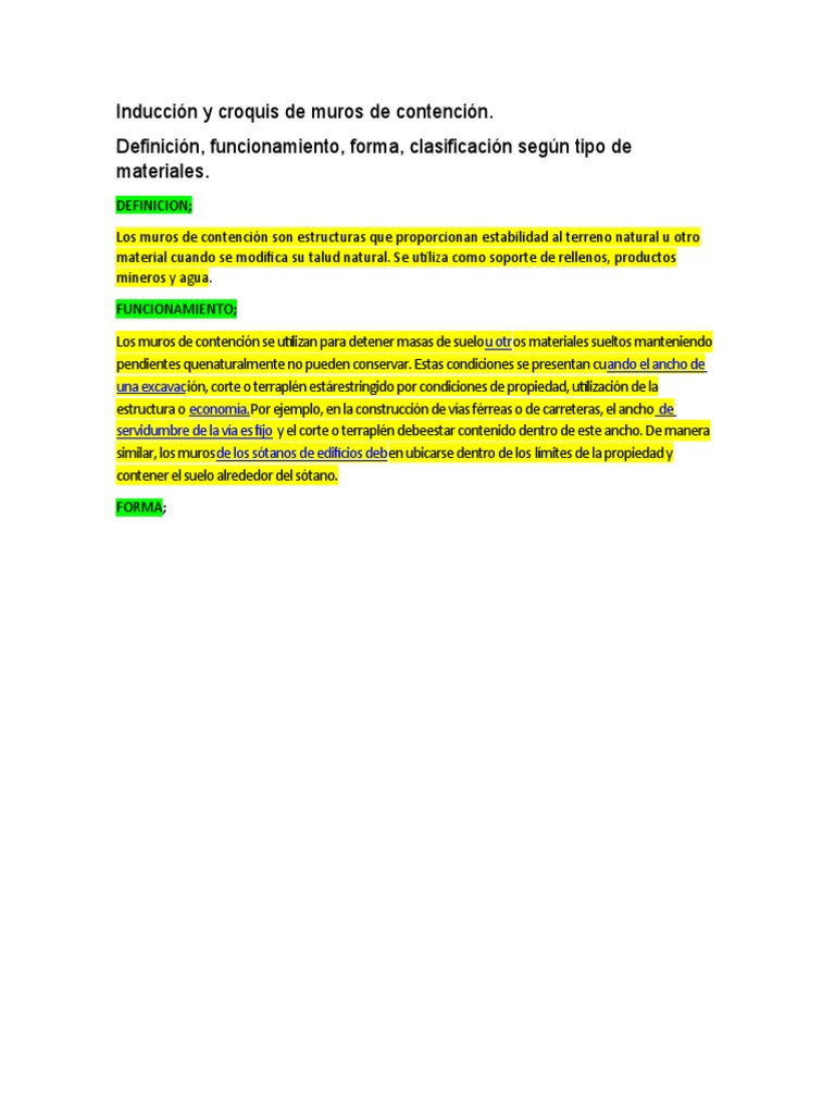 Los muros de contención se utilizan para detener masas de suelou otros materiales sueltos manteniendo