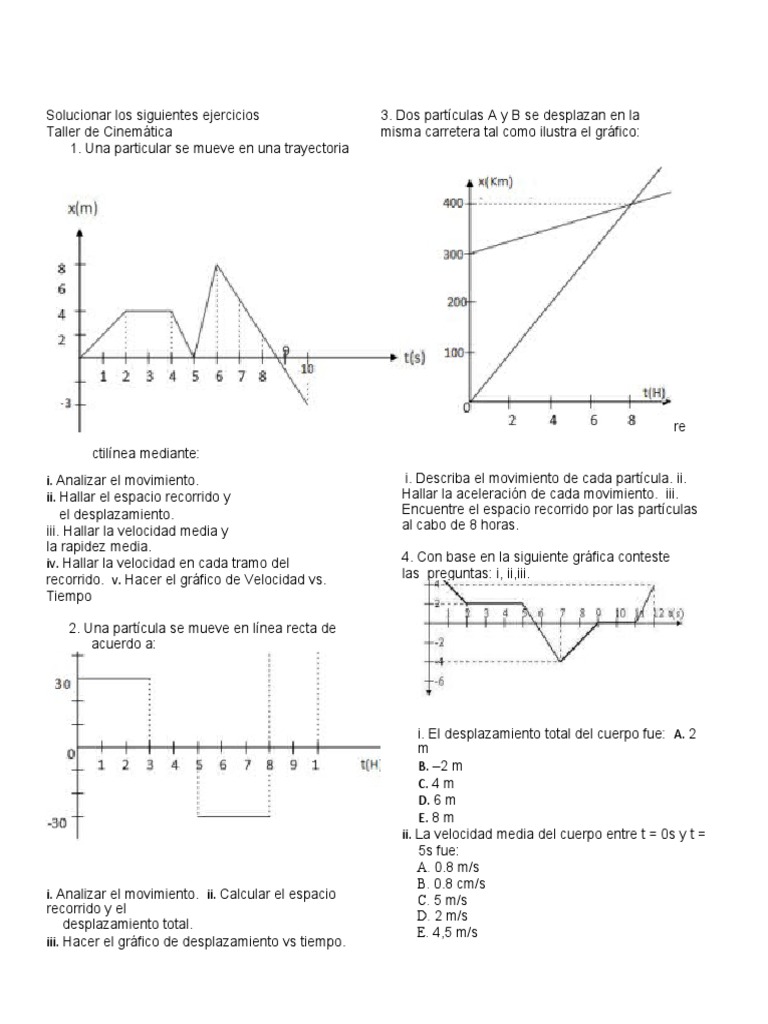 Taller de Cinemática misma carretera tal como ilustra el gráfico: