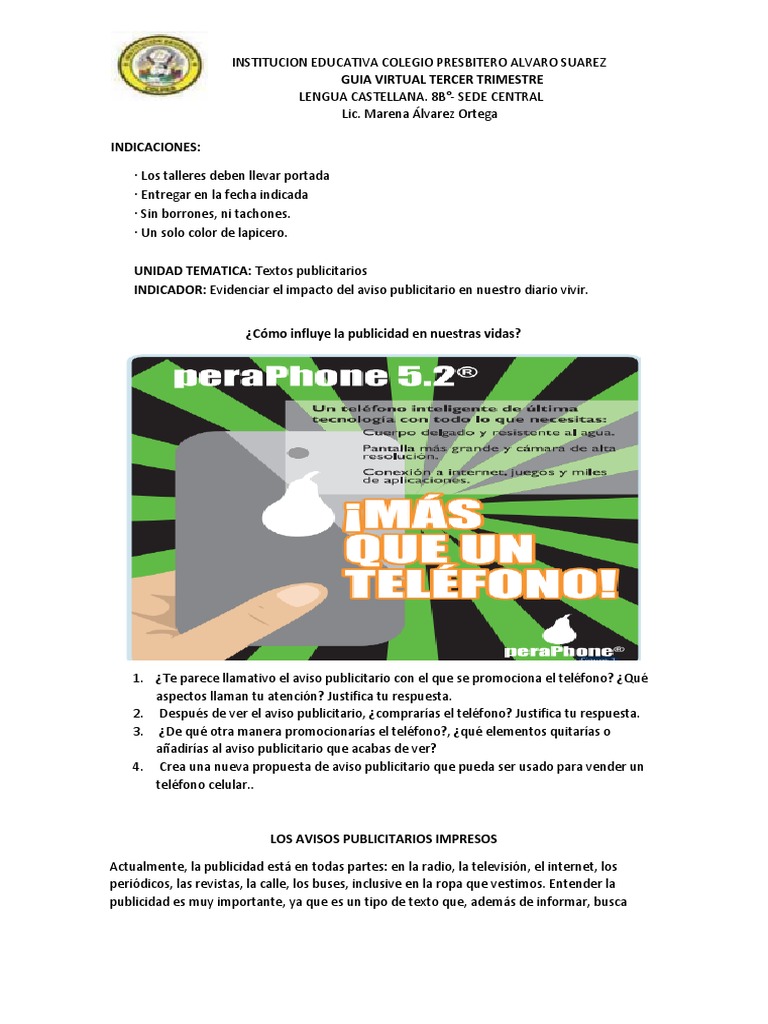 1. ¿Te parece llamativo el aviso publicitario con el que se promociona el teléfono? ¿Qué