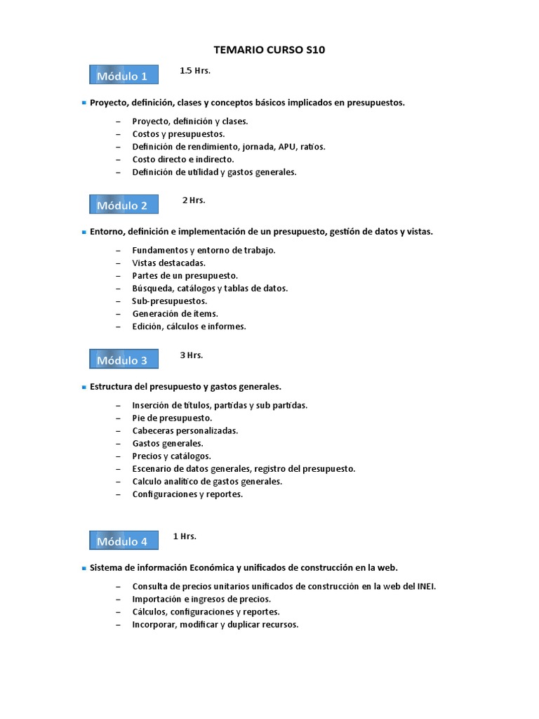 Elaboración de la formula polinómica para cada sub presupuesto.
