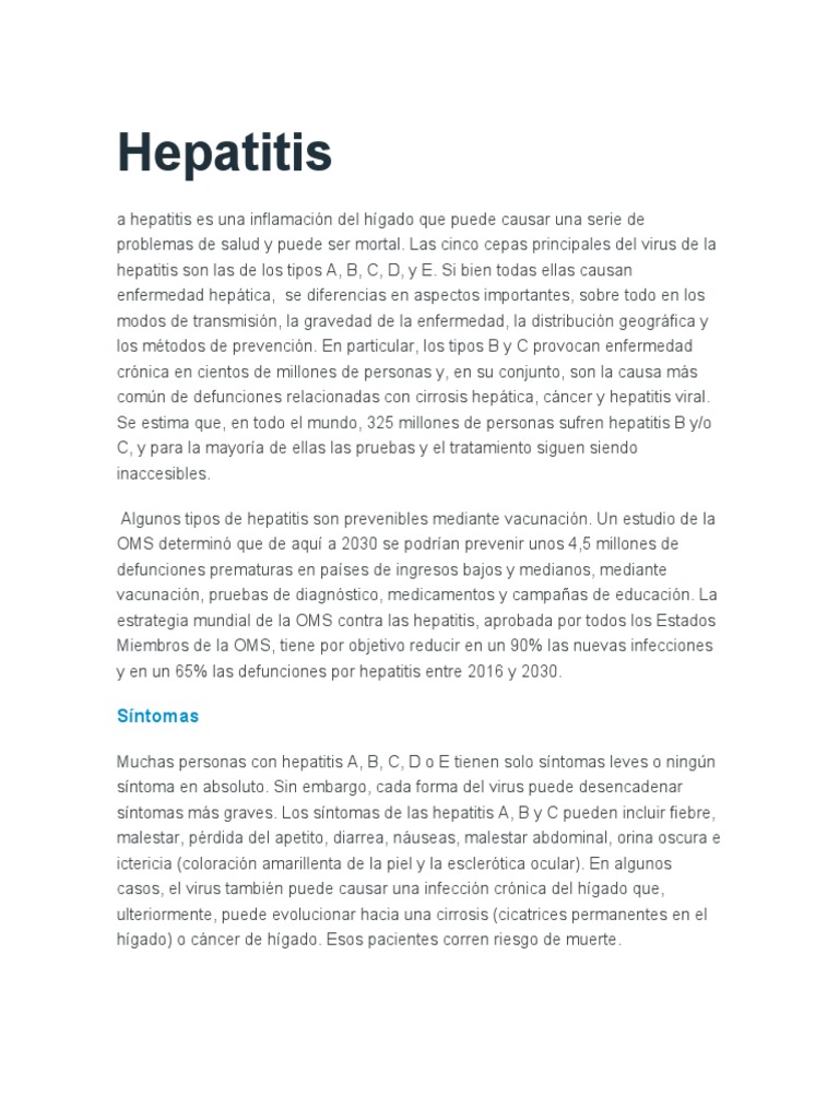 los métodos de prevención. En particular, los tipos B y C provocan enfermedad