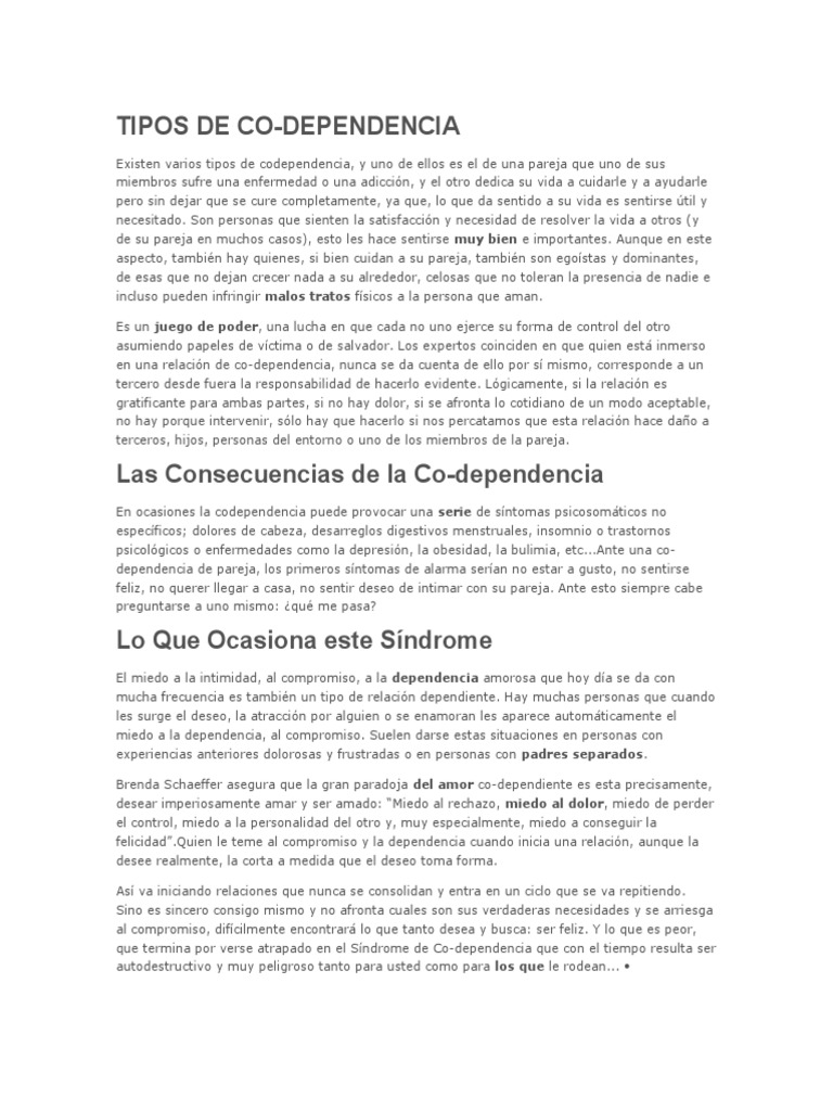 que termina por verse atrapado en el Síndrome de Co-dependencia que con el tiempo resulta ser
