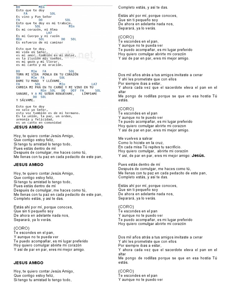 Después de comulgar, me haces como tú, Hoy quiero comulgar, abrirte mi corazón