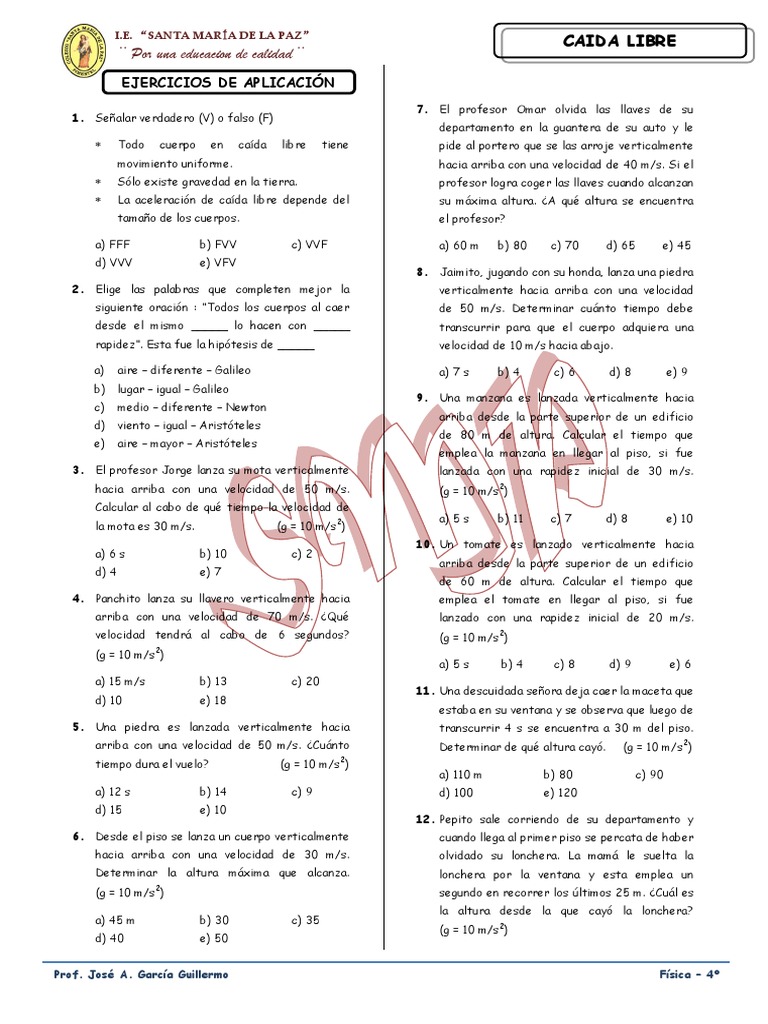 a) 28 m b) 45 c) 35 3. Un cuerpo es lanzado verticalmente hacia