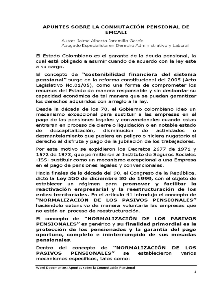 Word Documentos: Apuntes sobre la Conmutación Pensional