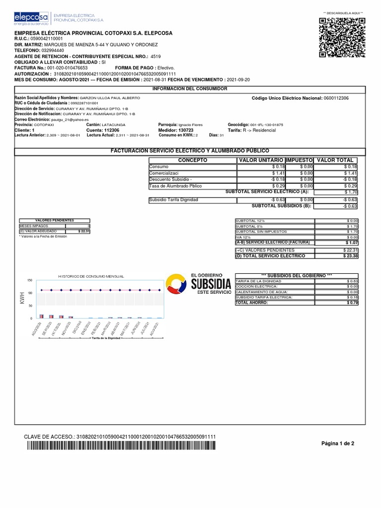 MES DE CONSUMO: AGOSTO/2021 --- FECHA DE EMISIÓN : 2021-08-31 FECHA DE VENCIMIENTO : 2021-09-20